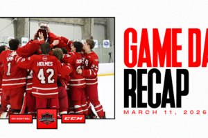 Santino Esposito (1G, 2A) got the ball rolling for NSW early on into this contest before PCHA’s Rhys Wilcox made things even in the following period. Later in the frame, NSW’s offence would strike back with goals from Rock Oosterveld (1G, 2A) and Noah Russo. Graeson Miller would put the cherry on top for NSW in the third while Kellen Ceraldi (41/42) held down the fort with a strong 41-save effort, tallying an assist in the process as well en route to NSW’s victory.